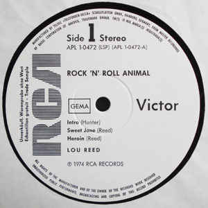 (1) Lou REED « Rock and Roll Animal » 1974 Face 1 Intro/Sweet Jane (Hunter, Reed) – 7:57Heroin – 13:16